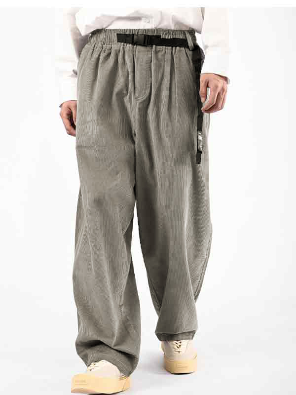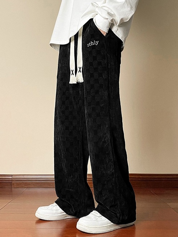 Herren-Hose aus Cord mit Schachbrettmuster und Kordelzug und weitem Bein