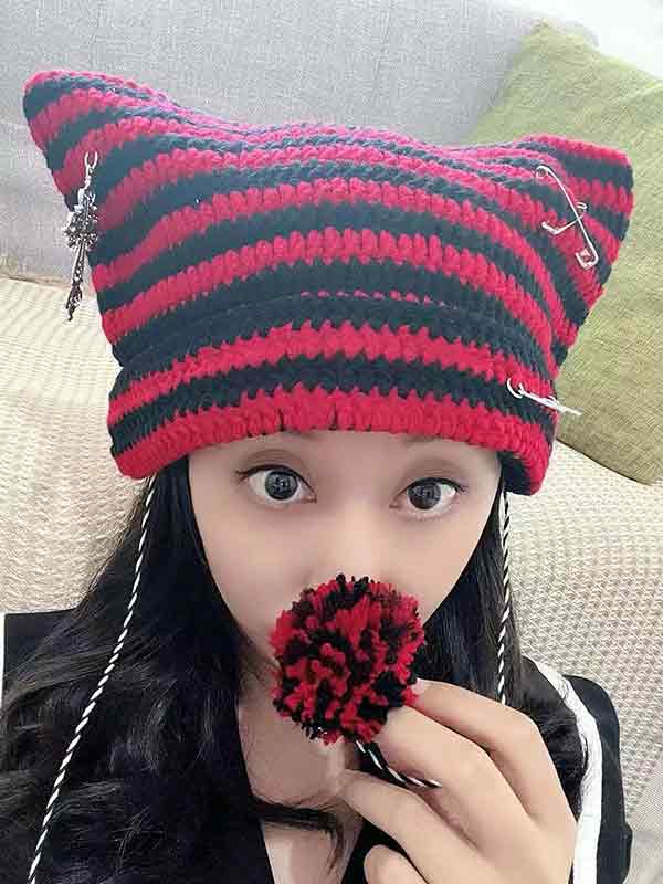 Schreibe die erste Bewertung für „Beanie-Mütze mit Streifen-Katzen-Design und Vintage-Anhänger“