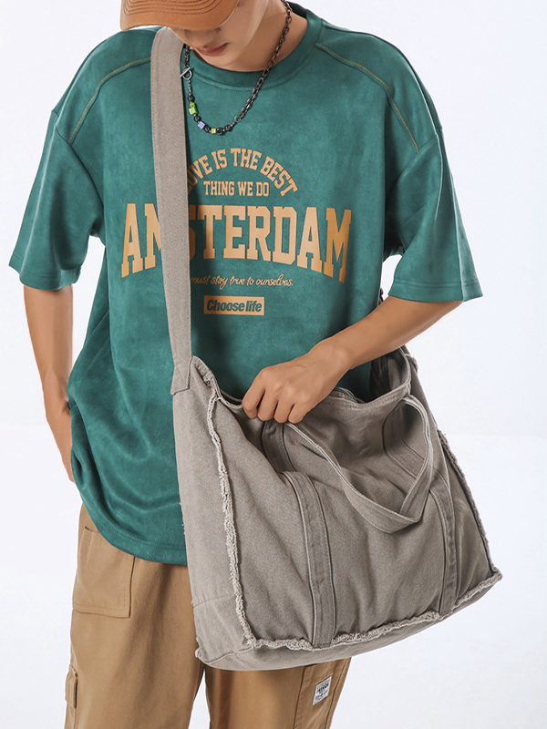 Details: Diese Umhängetasche mit Canvas-Design, die lässig ist, hat auch Grate als Dekor mit großen Kapazität.