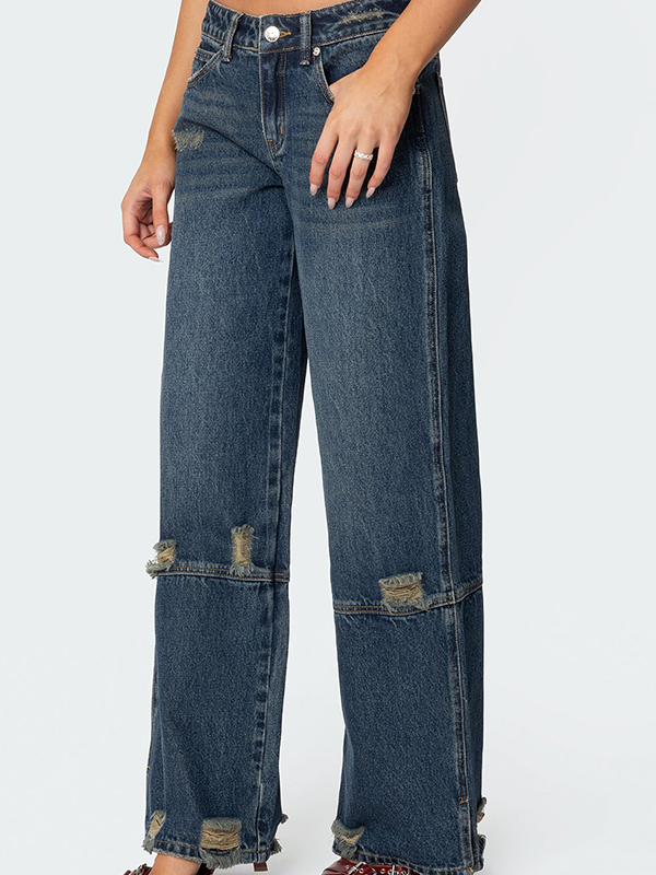 Distressed-Boyfriendjeans mit Schlitzen und niedriger Taille