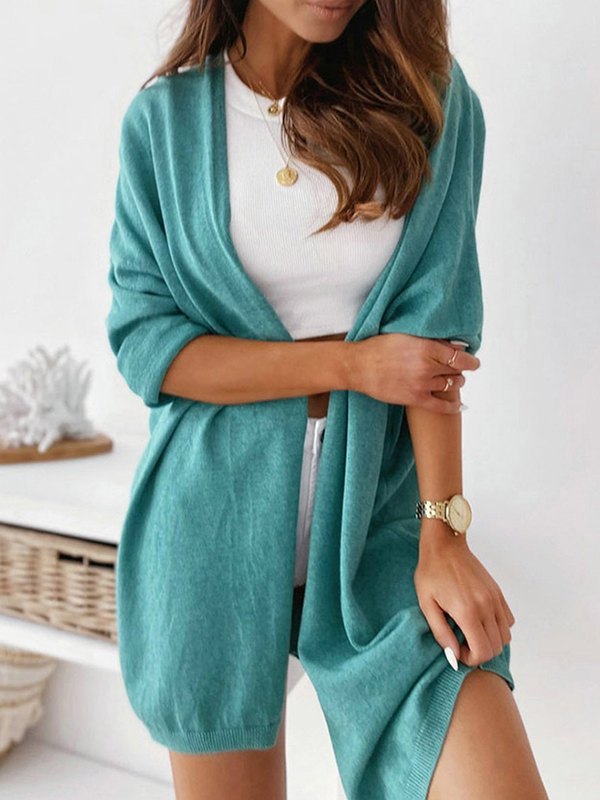Schreibe die erste Bewertung für „Einfarbige mittellange Strickjacke“