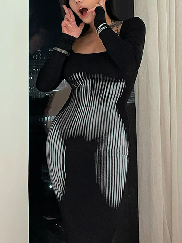 Pullover mit quadratischem Ausschnitt, langen Ärmeln, hoher Taille, Minikleider