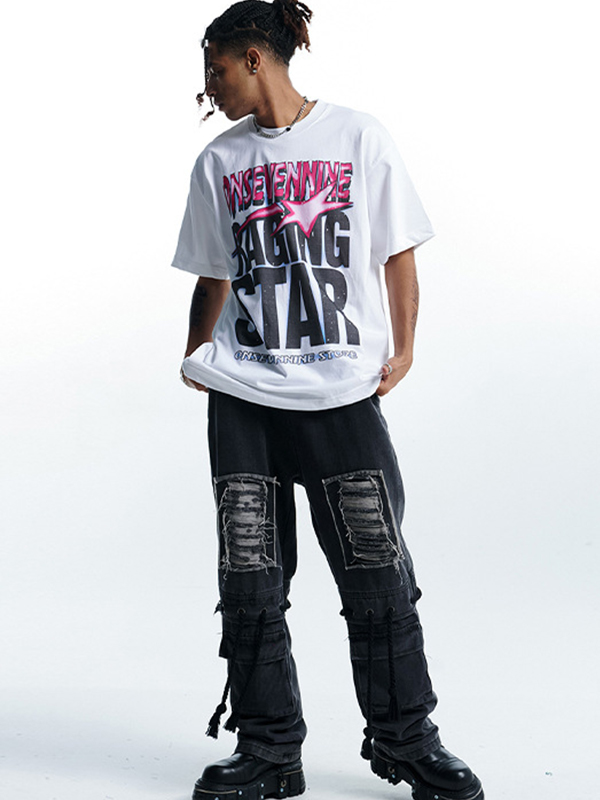 Stil: Casual/Street/Vintage/SüßMaterial: BaumwollePassform: Lockere PassformAusschnitt: RundhalsÄrmellänge: Kurze Ärmel